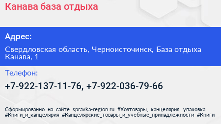 Канава, база отдыха по адресу Свердловская область, Черноисточинск, База отдыха Канава, 1 в дальнейшем Организация, размещена в следующих категориях: