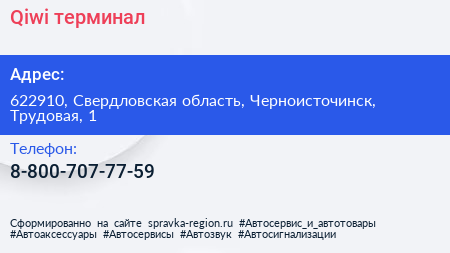 Qiwi, терминал по адресу 622910, Свердловская область, Черноисточинск, Трудовая, 1 в дальнейшем Организация, размещена в следующих категориях: