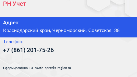 РН-Учет по адресу Краснодарский край, Черноморский, Советская, 38 в дальнейшем Организация, размещена в следующих категориях: