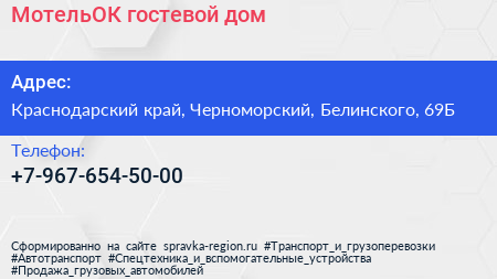 МотельОК, гостевой дом по адресу Краснодарский край, Черноморский, Белинского, 69Б в дальнейшем Организация, размещена в следующих категориях: