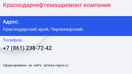 Краснодарнефтемашремонт, компания по адресу Краснодарский край, Черноморский, в дальнейшем Организация, размещена в следующих категориях: