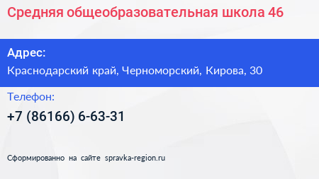 Средняя общеобразовательная школа №46 по адресу Краснодарский край, Черноморский, Кирова, 30 в дальнейшем Организация, размещена в следующих категориях: