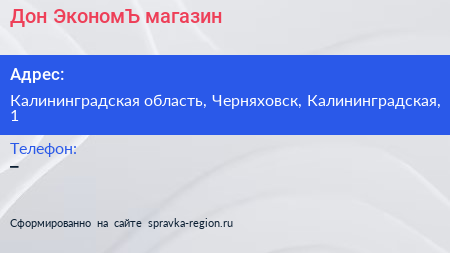 Дон ЭкономЪ, магазин по адресу Калининградская область, Черняховск, Калининградская, 1 в дальнейшем Организация, размещена в следующих категориях: