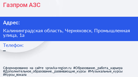 Газпром, АЗС по адресу Калининградская область, Черняховск, Промышленная улица, 1а в дальнейшем Организация, размещена в следующих категориях: