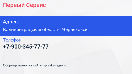 Первый Сервис по адресу Калининградская область, Черняховск, в дальнейшем Организация, размещена в следующих категориях: