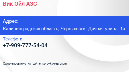 Вик-Ойл, АЗС по адресу Калининградская область, Черняховск, Дачная улица, 1а в дальнейшем Организация, размещена в следующих категориях: