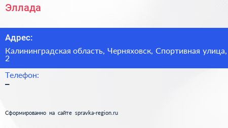 Эллада по адресу Калининградская область, Черняховск, Спортивная улица, 2 в дальнейшем Организация, размещена в следующих категориях:
