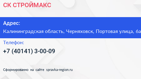 СК СТРОЙМАКС по адресу Калининградская область, Черняховск, Портовая улица, 6а в дальнейшем Организация, размещена в следующих категориях: