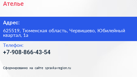 Ателье по адресу 625519, Тюменская область, Червишево, Юбилейный квартал, 1а в дальнейшем Организация, размещена в следующих категориях:
