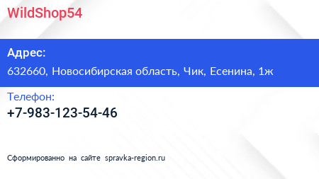 WildShop54 по адресу 632660, Новосибирская область, Чик, Есенина, 1ж в дальнейшем Организация, размещена в следующих категориях: