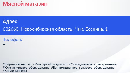 Мясной магазин по адресу 632660, Новосибирская область, Чик, Есенина, 1 в дальнейшем Организация, размещена в следующих категориях: