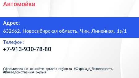 Автомойка по адресу 632662, Новосибирская область, Чик, Линейная, 1з/1 в дальнейшем Организация, размещена в следующих категориях: