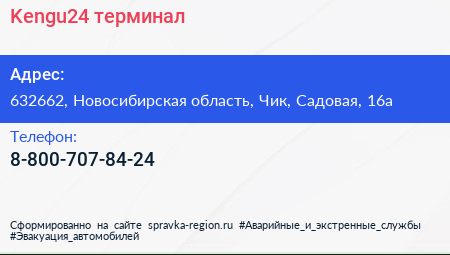 Kengu24, терминал по адресу 632662, Новосибирская область, Чик, Садовая, 16а в дальнейшем Организация, размещена в следующих категориях: