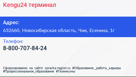Kengu24, терминал по адресу 632660, Новосибирская область, Чик, Есенина, 1г в дальнейшем Организация, размещена в следующих категориях: