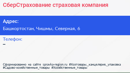 СберСтрахование, страховая компания по адресу Башкортостан, Чишмы, Северная, 6 в дальнейшем Организация, размещена в следующих категориях: