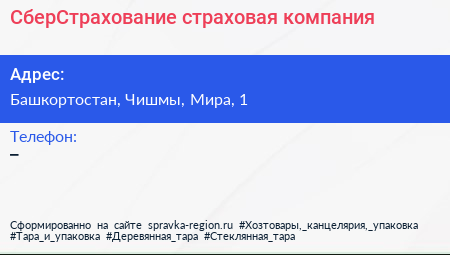 СберСтрахование, страховая компания по адресу Башкортостан, Чишмы, Мира, 1 в дальнейшем Организация, размещена в следующих категориях: