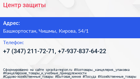 Центр защиты по адресу Башкортостан, Чишмы, Кирова, 54/1 в дальнейшем Организация, размещена в следующих категориях: