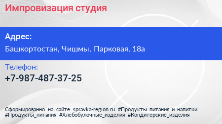 Импровизация, студия по адресу Башкортостан, Чишмы, Парковая, 18а в дальнейшем Организация, размещена в следующих категориях: