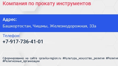 Компания по прокату инструментов по адресу Башкортостан, Чишмы, Железнодорожная, 33а в дальнейшем Организация, размещена в следующих категориях: