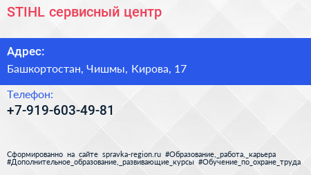 STIHL, сервисный центр по адресу Башкортостан, Чишмы, Кирова, 17 в дальнейшем Организация, размещена в следующих категориях: