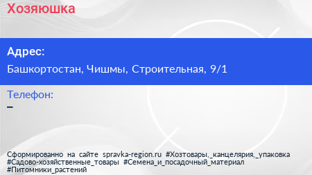 Хозяюшка по адресу Башкортостан, Чишмы, Строительная, 9/1 в дальнейшем Организация, размещена в следующих категориях: