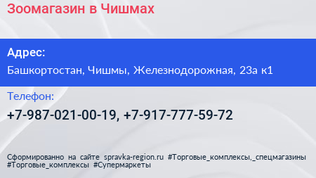 Зоомагазин в Чишмах по адресу Башкортостан, Чишмы, Железнодорожная, 23а к1 в дальнейшем Организация, размещена в следующих категориях: