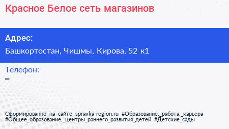 Красное & Белое, сеть магазинов по адресу Башкортостан, Чишмы, Кирова, 52 к1 в дальнейшем Организация, размещена в следующих категориях:
