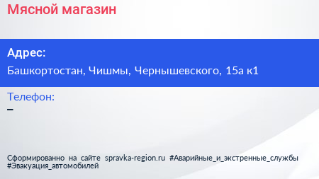 Мясной магазин по адресу Башкортостан, Чишмы, Чернышевского, 15а к1 в дальнейшем Организация, размещена в следующих категориях: