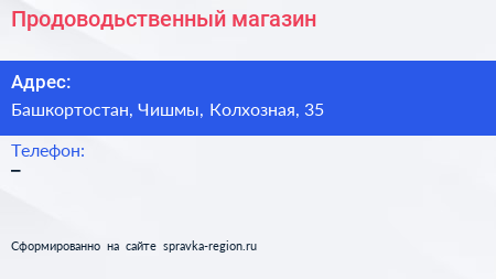 Продоводьственный магазин по адресу Башкортостан, Чишмы, Колхозная, 35 в дальнейшем Организация, размещена в следующих категориях: