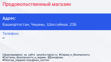 Продовольственный магазин по адресу Башкортостан, Чишмы, Шоссейная, 23Б в дальнейшем Организация, размещена в следующих категориях: