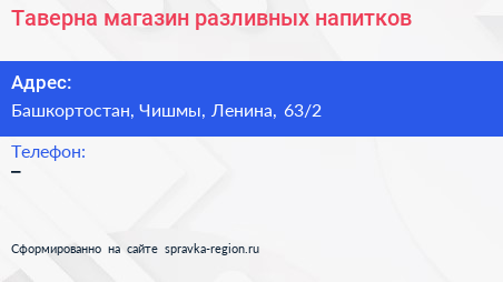 Таверна, магазин разливных напитков по адресу Башкортостан, Чишмы, Ленина, 63/2 в дальнейшем Организация, размещена в следующих категориях: