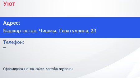 Уют по адресу Башкортостан, Чишмы, Гизатуллина, 23 в дальнейшем Организация, размещена в следующих категориях: