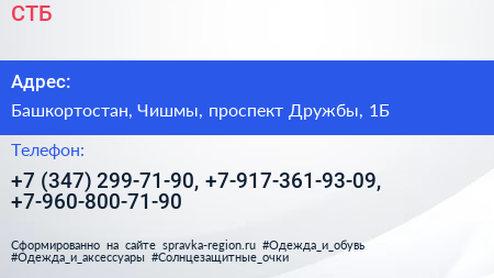 СТБ по адресу Башкортостан, Чишмы, проспект Дружбы, 1Б в дальнейшем Организация, размещена в следующих категориях: