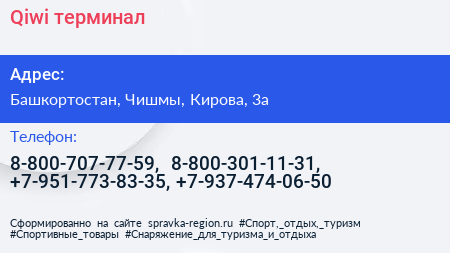Qiwi, терминал по адресу Башкортостан, Чишмы, Кирова, 3а в дальнейшем Организация, размещена в следующих категориях: