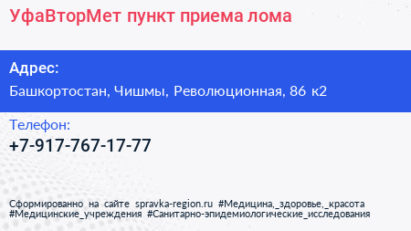 УфаВторМет, пункт приема лома по адресу Башкортостан, Чишмы, Революционная, 86 к2 в дальнейшем Организация, размещена в следующих категориях: