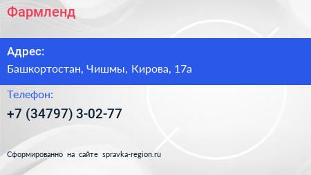 Фармленд по адресу Башкортостан, Чишмы, Кирова, 17а в дальнейшем Организация, размещена в следующих категориях: