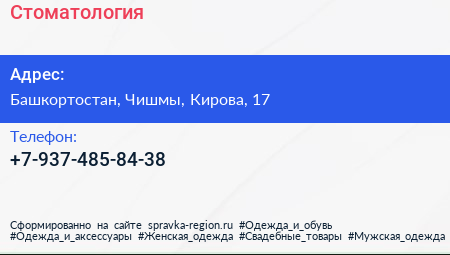 Стоматология по адресу Башкортостан, Чишмы, Кирова, 17 в дальнейшем Организация, размещена в следующих категориях: