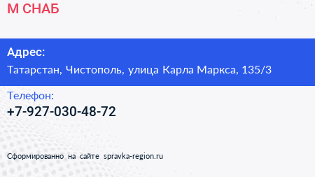 М-СНАБ по адресу Татарстан, Чистополь, улица Карла Маркса, 135/3 в дальнейшем Организация, размещена в следующих категориях:
