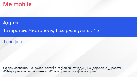 Me mobile по адресу Татарстан, Чистополь, Базарная улица, 15 в дальнейшем Организация, размещена в следующих категориях: