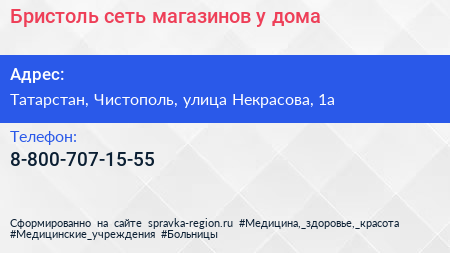 Бристоль, сеть магазинов у дома по адресу Татарстан, Чистополь, улица Некрасова, 1а в дальнейшем Организация, размещена в следующих категориях: