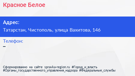 Красное & Белое по адресу Татарстан, Чистополь, улица Вахитова, 146 в дальнейшем Организация, размещена в следующих категориях: