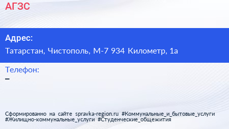 АГЗС по адресу Татарстан, Чистополь, М-7 934 Километр, 1а в дальнейшем Организация, размещена в следующих категориях: