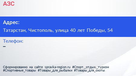 АЗС по адресу Татарстан, Чистополь, улица 40 лет Победы, 54 в дальнейшем Организация, размещена в следующих категориях: