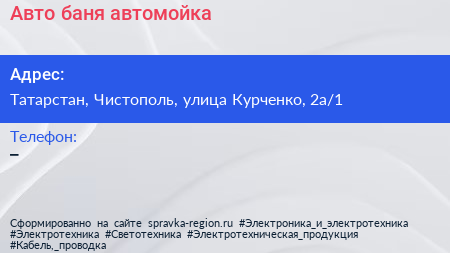 Авто-баня, автомойка по адресу Татарстан, Чистополь, улица Курченко, 2а/1 в дальнейшем Организация, размещена в следующих категориях: