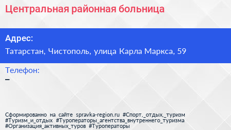 Центральная районная больница по адресу Татарстан, Чистополь, улица Карла Маркса, 59 в дальнейшем Организация, размещена в следующих категориях: