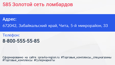 585*Золотой, сеть ломбардов по адресу 672042, Забайкальский край, Чита, 5-й микрорайон, 33 в дальнейшем Организация, размещена в следующих категориях: