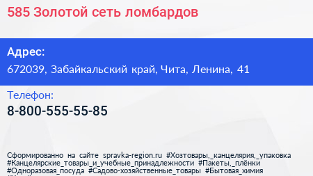 585*Золотой, сеть ломбардов по адресу 672039, Забайкальский край, Чита, Ленина, 41 в дальнейшем Организация, размещена в следующих категориях: