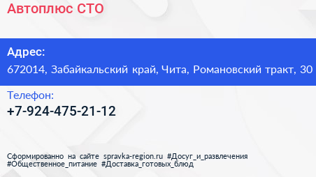 Автоплюс, СТО по адресу 672014, Забайкальский край, Чита, Романовский тракт, 30 в дальнейшем Организация, размещена в следующих категориях: