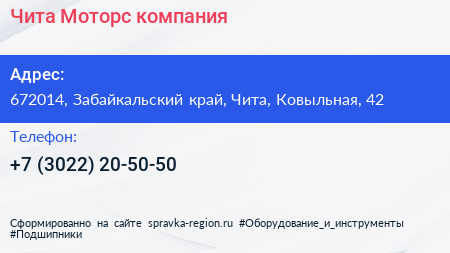 Чита Моторс, компания по адресу 672014, Забайкальский край, Чита, Ковыльная, 42 в дальнейшем Организация, размещена в следующих категориях: