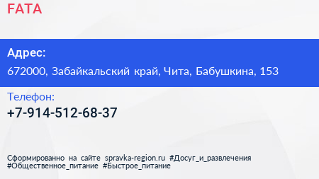 FATA по адресу 672000, Забайкальский край, Чита, Бабушкина, 153 в дальнейшем Организация, размещена в следующих категориях: